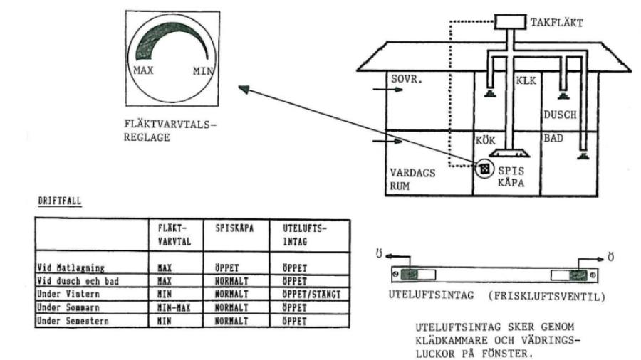 I en del bostäder kan man ha bytt köksfläkt eller ändrat i ventilationen. Dock måste man alltid ha ett "grund-drag" samt möjlighet att öka/minska takfläktens hastighet och sug. (Kan även vara bra att ha möjlighet att helt stänga av via vredet).